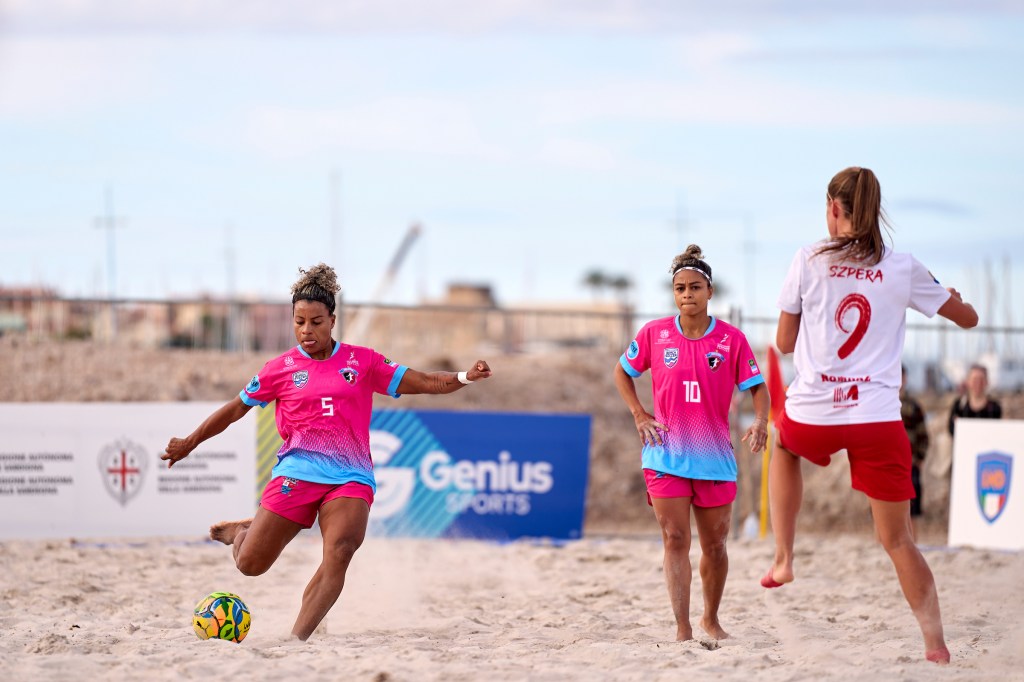 Na última partida da 1ª fase do Mundial de Clubes Feminino de Beach Soccer, a equipe do São Pedro goleou mais uma vez. Um placar mais “modesto”, é verdade. Porém, o resultado de 4 a 2 sobre o Red Devils Ladies, da Polônia, mostrou o “poder de fogo” das brasileiras, que terminam a fase de grupos na liderança isolada da Chave B e com 100% de aproveitamento.