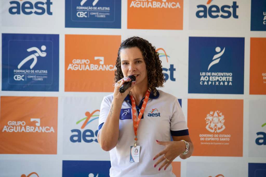 A presidente do Clube AEST, Danielli Bernardi, em discurso, agradeceu a Secretaria de Esportes e Lazer (Sesport), que apoia o projeto, a partir da Lei de Incentivo ao Esporte Capixaba – LIEC – financiado pela empresa Águia Branca.